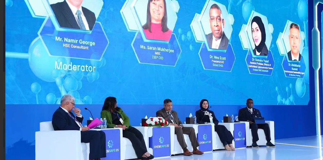 شاركت أستاذ الهندسة البيئية المساعد، ومدير مركز الاتصال المؤسسي بجامعة الخليج العربي في المؤتمر والمعرض الدولي للسلامة الكيميائية (كيم سيف 2025) في نسخته الأولى، الذي استضافته مملكة البحرين مؤخرًا بمركز الخليج للمؤتمرات، تحت شعار "الكيمياء الصناعية من أجل مستقبل آمن ومستدام". وقد نظم المؤتمر جمعية الكيميائيين البحرينية والمشرق للتدريب، بالتعاون مع وزارة النفط والبيئة في البحرين، وبمشاركة نخبة من الخبراء وصنّاع القرار والمتخصصين من مختلف دول العالم.