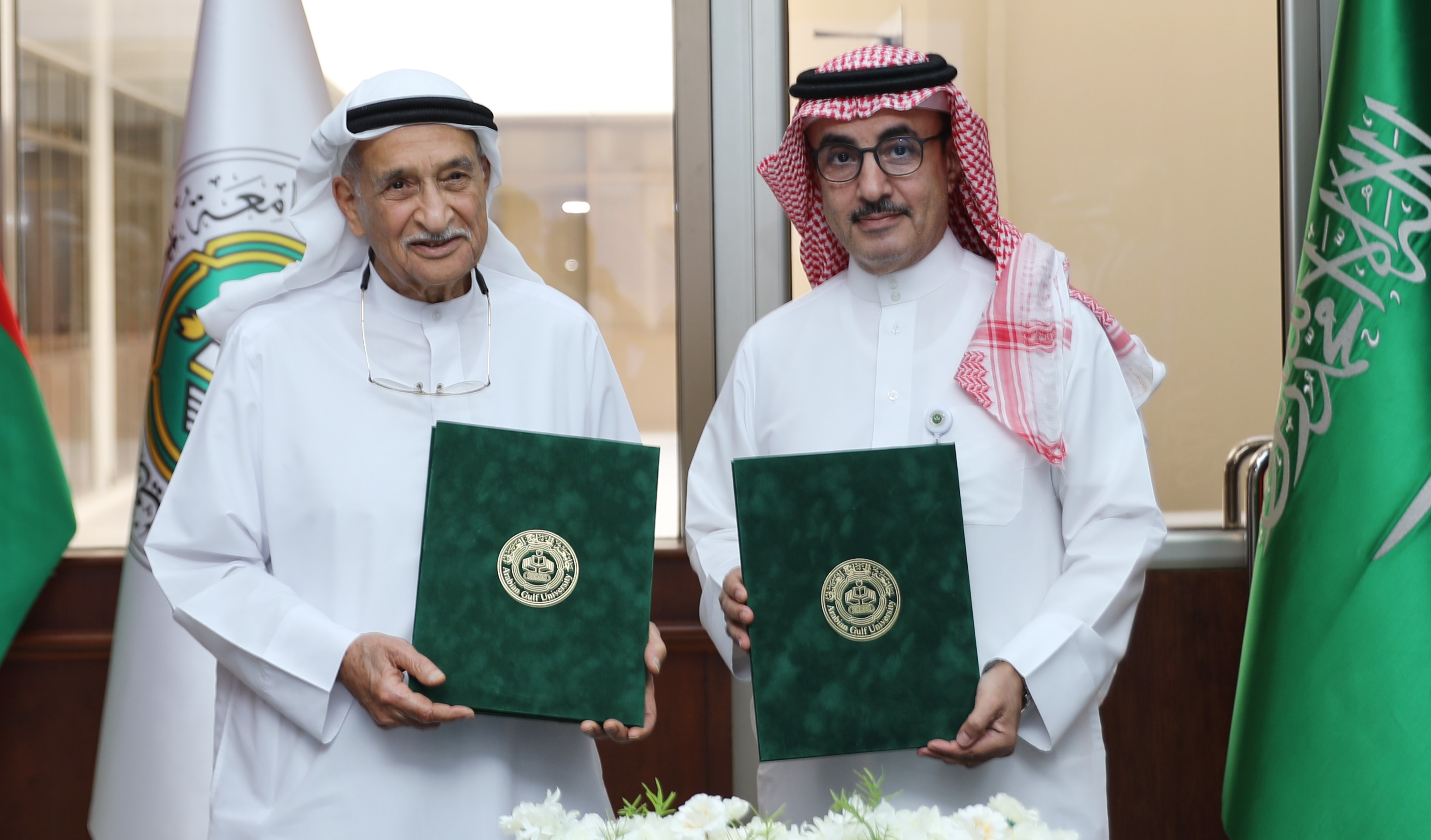 وقع معالي الفريق طبيب الشيخ محمد بن عبدالله آل خليفة رئيس المجلس الأعلى للصحة ورئيس مجلس إدارة جمعية السكري البحرينية، مذكرة تفاهم مع معالي رئيس جامعة الخليج العربي الدكتور سعد بن سعود آل فهيد تهدف إلى تعميق الشراكة وتعزيز مجالات التعاون الاستراتيجي، وتبني المبادرات المجتمعية الهادفة المشتركة بين الطرفين.