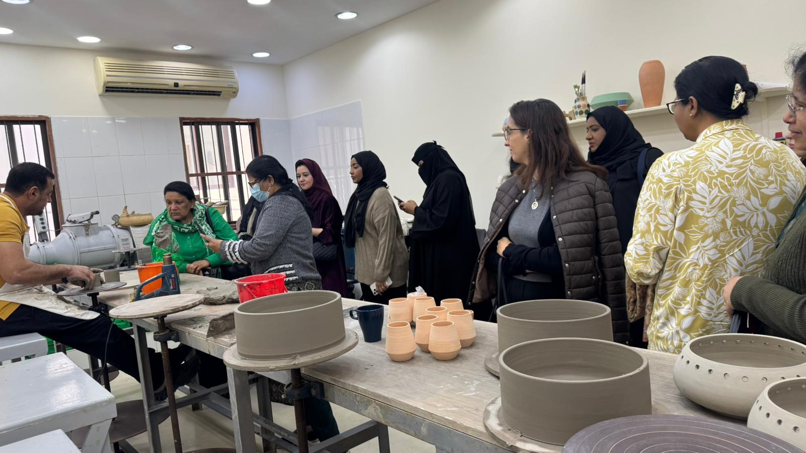 The visit included a tour of the centre, where participants explored various Bahraini handicrafts, including carpets, ceramics, and textiles. They also interacted with the centre's artisans and learned about their initiatives.