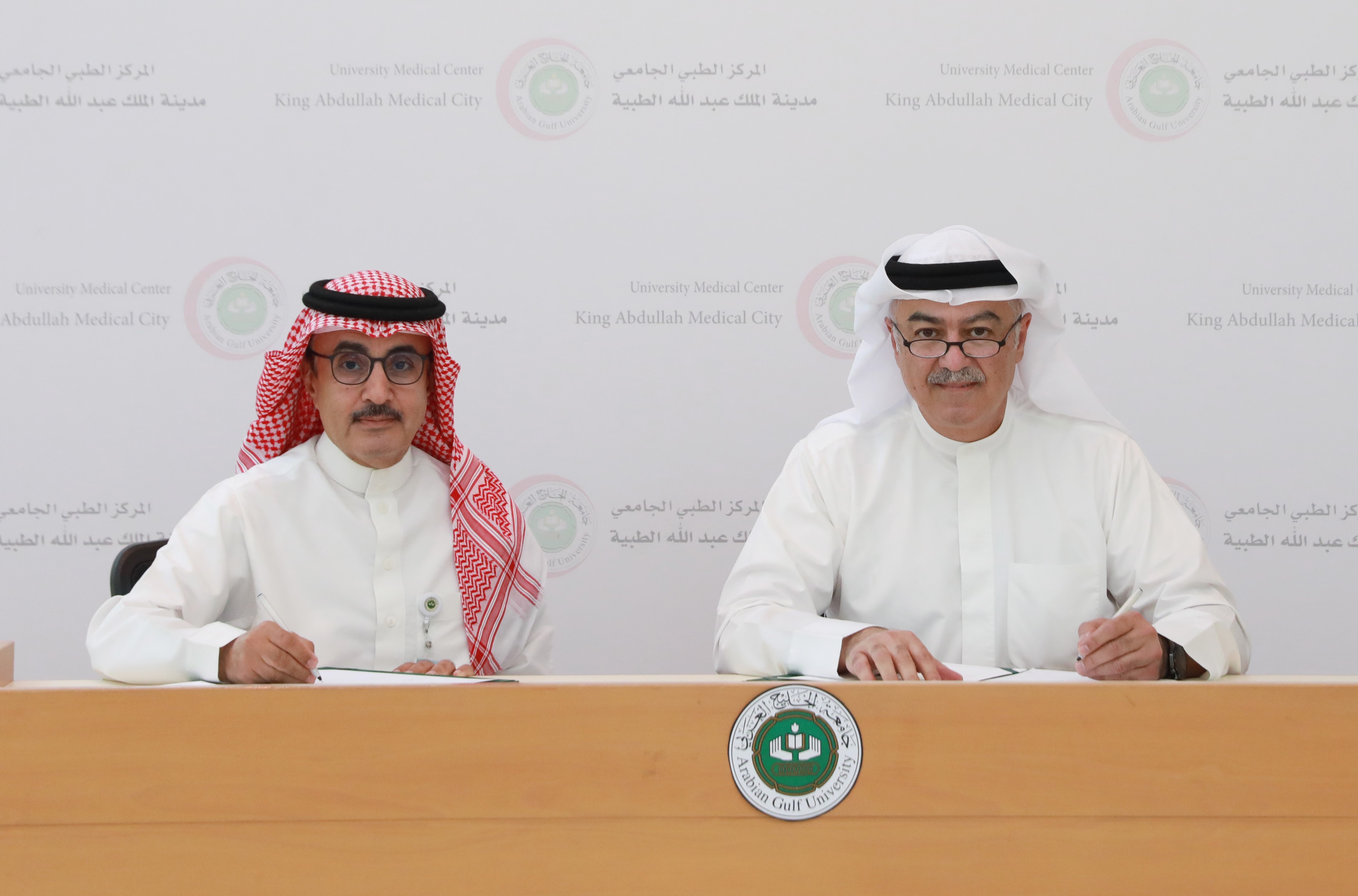 وأضاف قائلاً: "نعتز بأن يكون تعاوننا اليوم مع المركز الطبي الجامعي بمدينة الملك عبدالله الطبية التابعة لجامعة الخليج العربي، من منطلق كونه مستشفى طبي وأكاديمي يوفر أعلى المعايير الطبية ويستند في قوته على كلية الطب والعلوم الصحية في جامعة الخليج العربي التي تحتوي على نخبة من الأطباء والأكاديميين وطلبة الطب والباحثين المتمكنين، مما يشكل علامة تميز للمركز الطبي الجامعي، ويجعله يوازي في خصوصيته المستشفيات الأكاديمية العالمية.