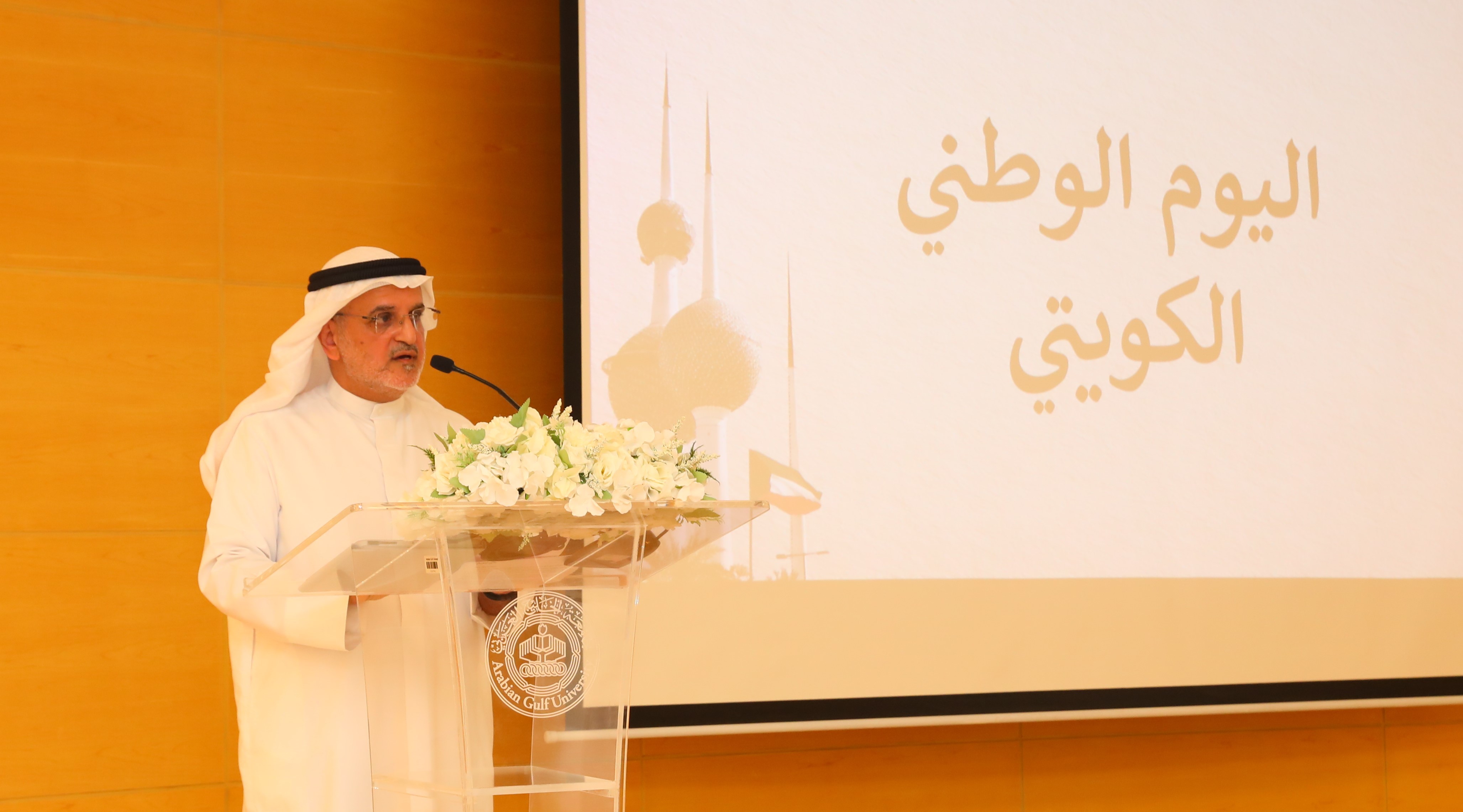 ومن جانبه، قال رئيس المكتب الثقافي الكويتي بسفارة دولة الكويت الشقيقة الأستاذ الدكتور محمد الدغيم في كلمته إن الأعياد الوطنية تمثّل محطة اعتزاز وفخر في قلب كل كويتي، لما تحمله من معاني الولاء والانتماء والوفاء للوطن وقيادته الرشيدة، مشيرًا إلى عمق الروابط الأخوية التي تجمع دولة الكويت بمملكة البحرين وكلّ دول الخليج العربيّة، وما يربط الشعوب الشقيقةَ من وشائج القربى والمصير المشترك، مؤكّدًا أن الاحتفال بهذه المناسبة في جامعة الخليج العربي يجسد معاني المحبة والتلاحم الخليجي.