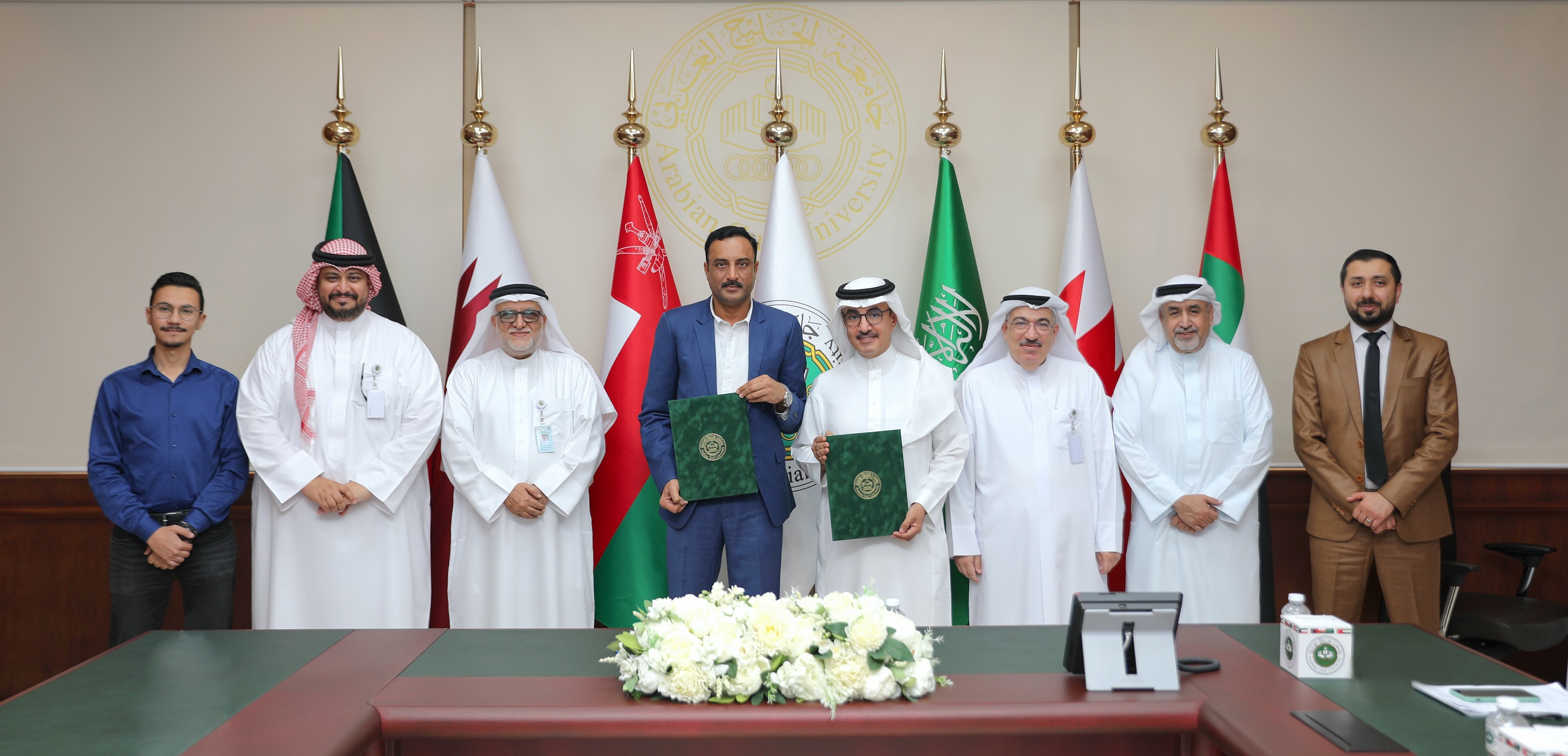 وقع معالي رئيس جامعة الخليج العربي الدكتور سعد بن سعود آل فهيد عقد إنجاز المرحلة الرابعة لمشروع تطوير السكن الجامعي في الصخير مع الرئيس التنفيذي في مجموعة ناز الخليج للمقاولات السيد شهيد محمود، وذلك بهدف تجديد وتطوير مباني السكن الجامعي للطلبة بما يحقق راحة أكبر للطلاب والطالبات الدراسين الجامعة من أبناء دول مجلس التعاون لدول الخليج العربية المقيمين في السكن الجامعي.
