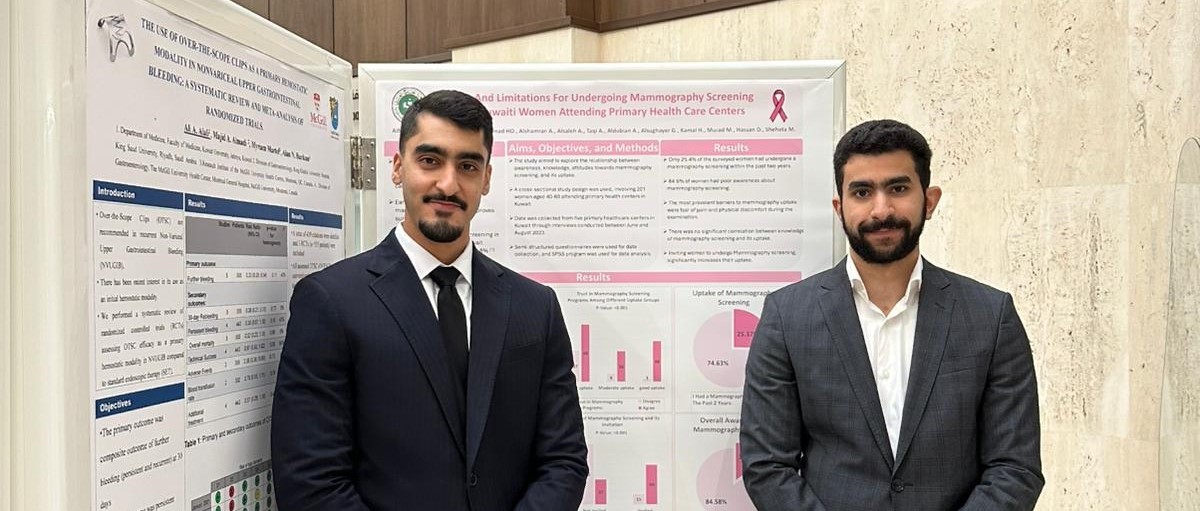 The student research team leader, Omar Al Failakawi, said: "In this study, we sought to understand the real reasons behind the low rates of breast cancer screening. The percentage of those who underwent screening within the past two years did not exceed 25.4%, while more than half of the participants (52.2%) had never undergone it, despite the vast majority being aware of the national screening programme."