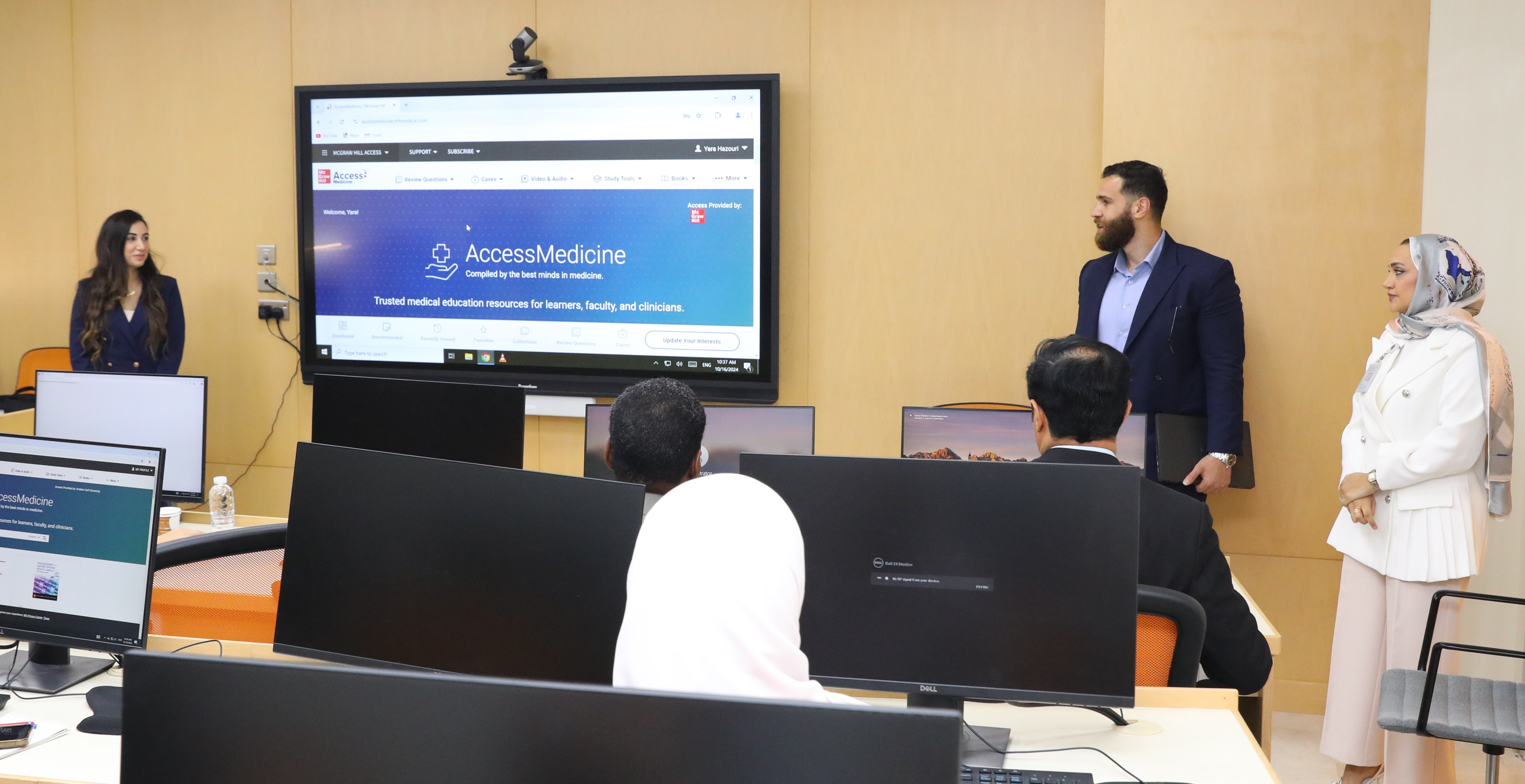 The training was attended by Head of Training at McGraw Hill, Lecturer Yara Hazouri, and the company's Middle East Regional Director, Lecturer Hugh Beatty. It is noteworthy that McGraw Hill specialises in educational publishing and academic content development in the Middle East region, and provides a wide range of educational resources for students and teachers worldwide. The AccessMedicine and AccessSurgery databases provide a comprehensive set of medical textbooks, interactive tools, and educational videos that help researchers, students, and doctors access the latest medical information and comprehensive educational research.