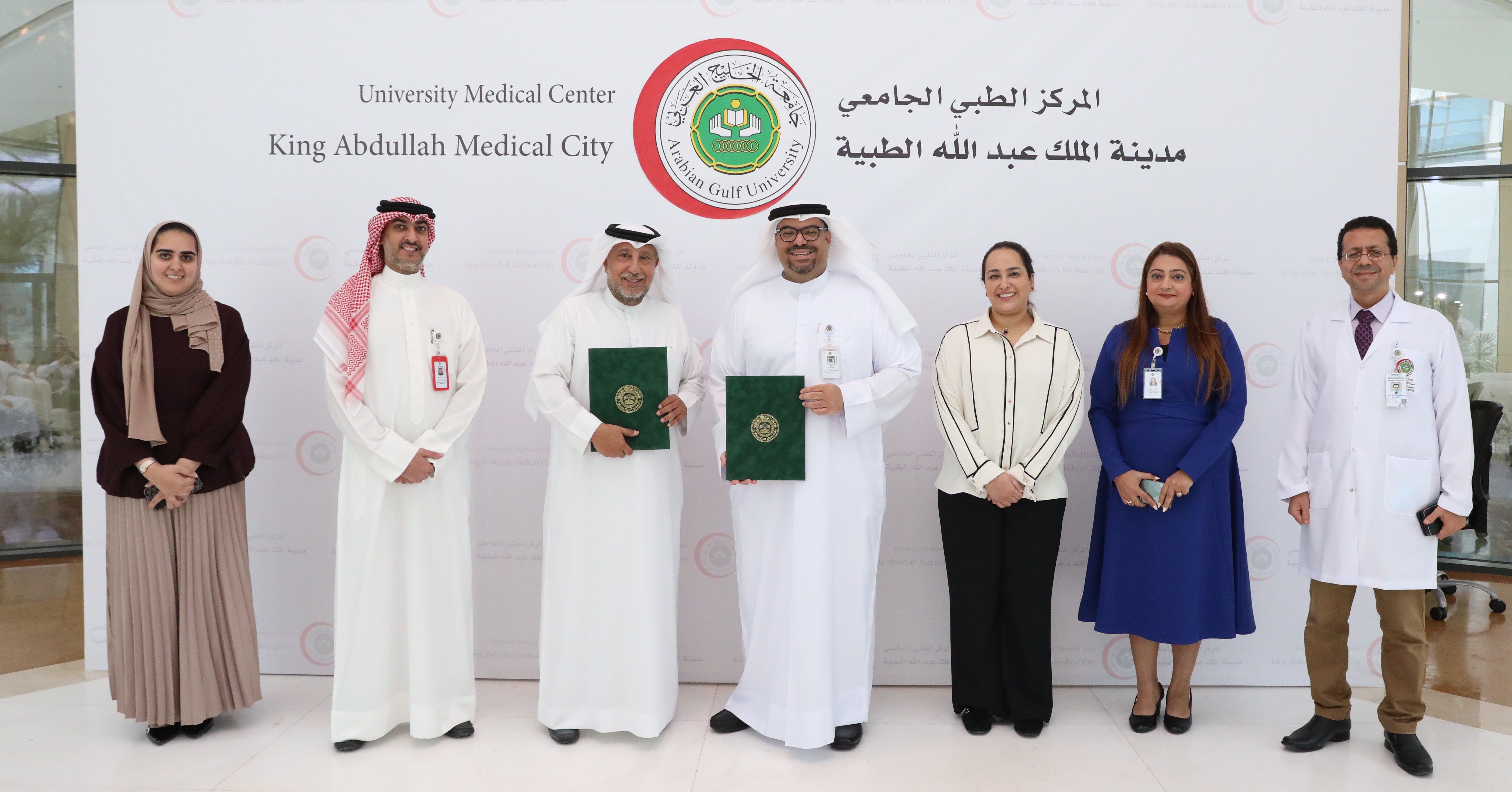 The CEO of the University Medical Centre (UMC) in King Abdullah Medical City, Dr Salman Hamad Al Zayani, signed a memorandum of understanding with the President of the Bahrain Society for Children with Behavioural and Communication Difficulties, Dr Shaikha Rania bint Ali Al Khalifa, signed on her behalf by Board Member, Mr Fathi Abdulrahman Matar. The agreement aims to deepen cooperation in the field of scientific research and training, providing specialised medical services to students with disabilities.