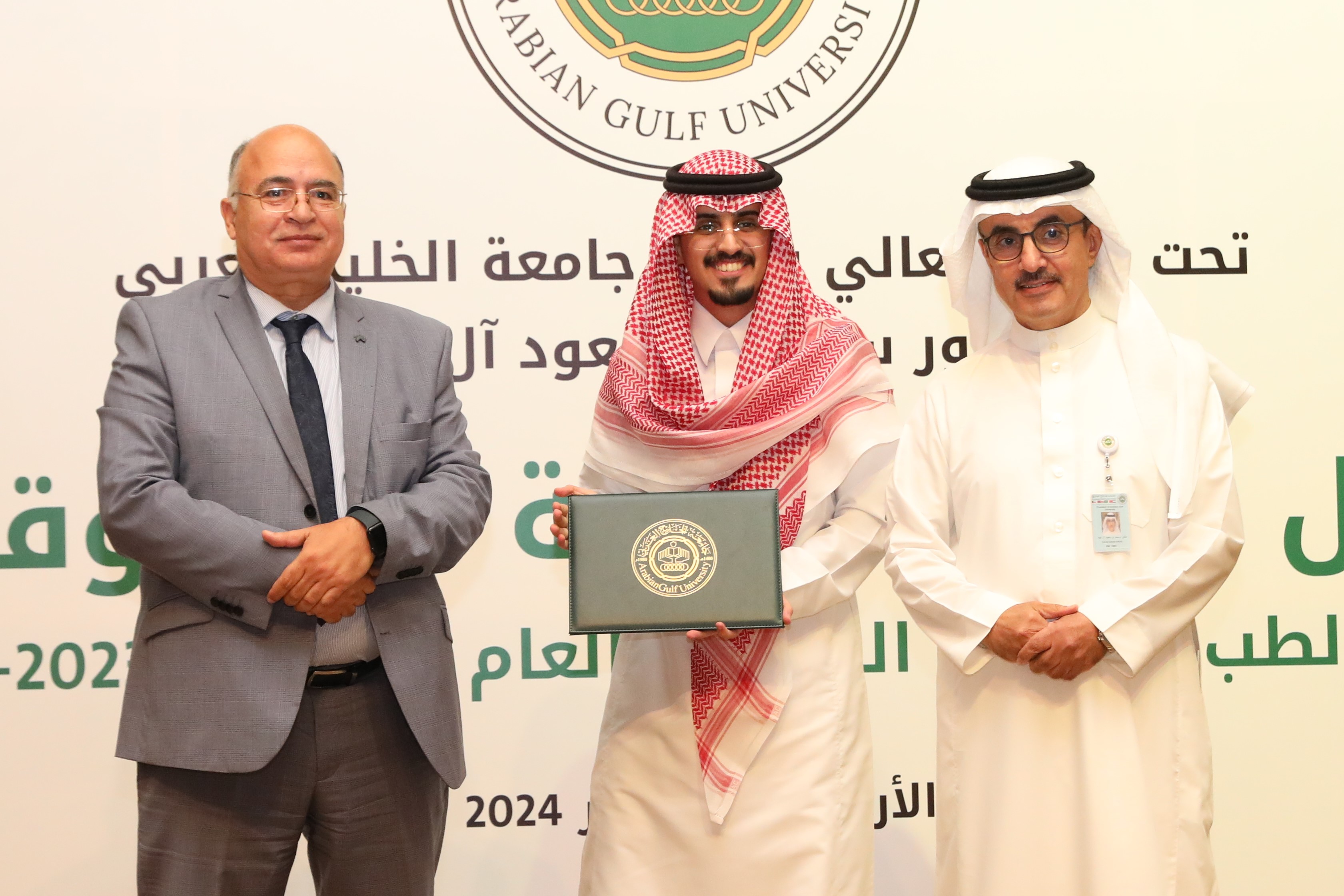 وشدد الدكتور آل فهيد على مواصلة جامعة الخليج العربي الدعم والتشجيع لهؤلاء الطلبة الطموحين ليستمروا في مساراتهم المهنية والأكاديمية بنجاح. منوهاً بأن جامعة الخليج العربي أطلقت العديد من المبادرات التي تدعم الموهبة والتميز والابتكار، وخصصت برنامجًا خاصًا لتطوير قدرات الطلبة الموهوبين في كلية الطب.
