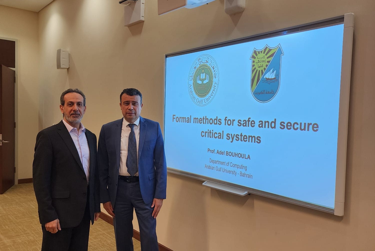 The College of Engineering and Petroleum at Kuwait University hosted Professor Adel Bouhoula, Head of the Computing Department at Arabian Gulf University (AGU), for a scientific seminar. During the event, he presented his research on developing innovative technologies for designing safe and secure digital systems. These technologies aim to address software errors and technical vulnerabilities that could lead to serious consequences in critical sectors such as health, finance, aviation, space, and defence.