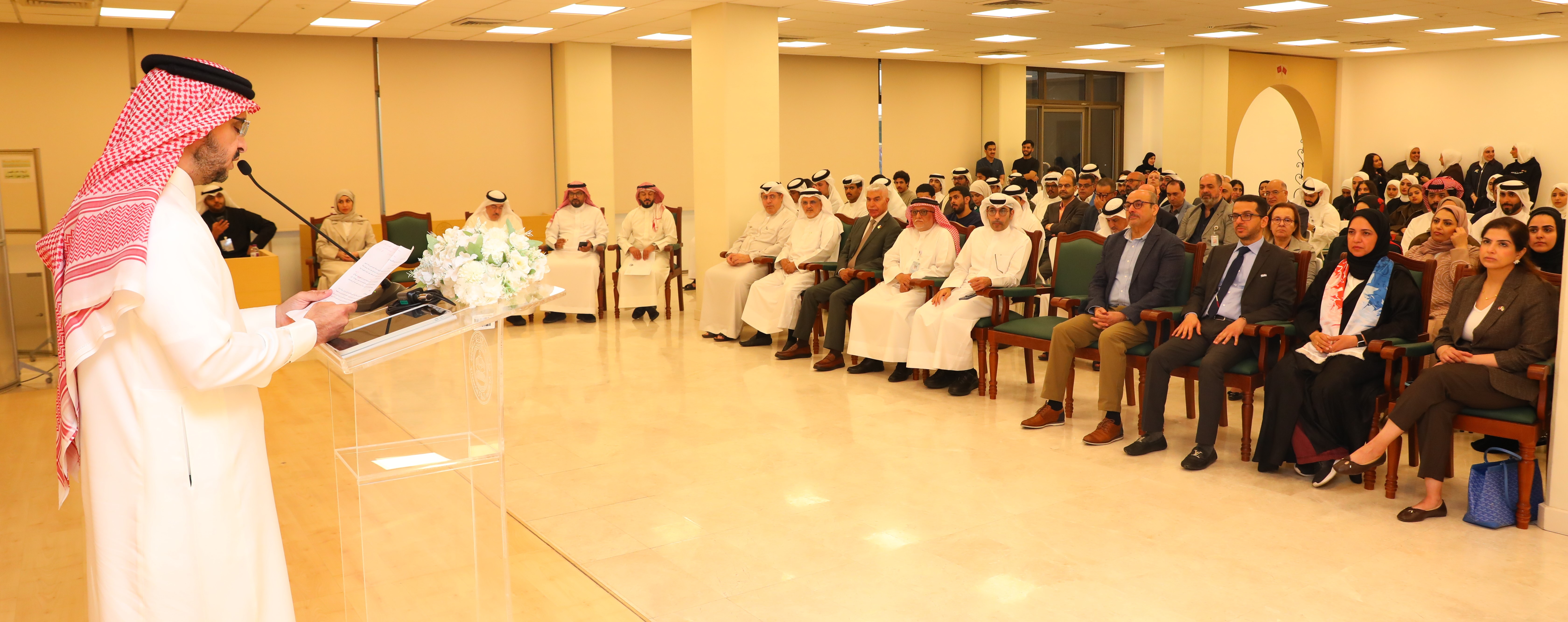 ومن جانبه، قال رئيس المكتب الثقافي الكويتي بسفارة دولة الكويت الشقيقة الأستاذ الدكتور محمد الدغيم في كلمته إن الأعياد الوطنية تمثّل محطة اعتزاز وفخر في قلب كل كويتي، لما تحمله من معاني الولاء والانتماء والوفاء للوطن وقيادته الرشيدة، مشيرًا إلى عمق الروابط الأخوية التي تجمع دولة الكويت بمملكة البحرين وكلّ دول الخليج العربيّة، وما يربط الشعوب الشقيقةَ من وشائج القربى والمصير المشترك، مؤكّدًا أن الاحتفال بهذه المناسبة في جامعة الخليج العربي يجسد معاني المحبة والتلاحم الخليجي.
