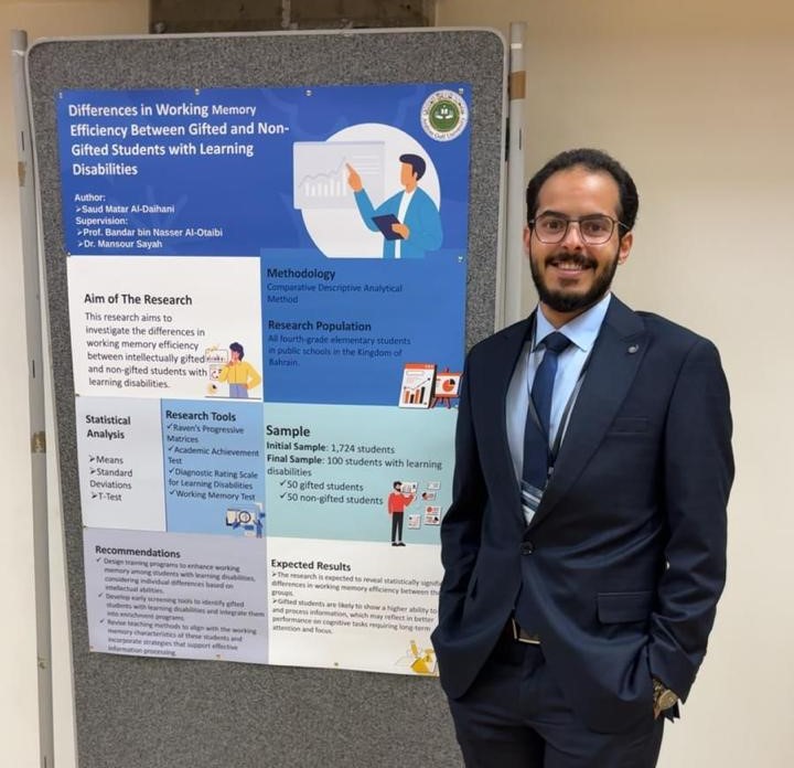 وقدم طلبة البرنامج خلال أعمال المؤتمر عروضًا لأبحاثهم العلمية التي تناولت موضوعات متنوعة في مجال التربية الخاصة والتعليم الشامل، مثل "الفروق في كفاءة الذاكرة العاملة بين التلاميذ ذوي صعوبات التعلم المتفوقين عقليًا وغير المتفوقين"، و"تأثير استخدام الذكاء الاصطناعي على السلوك الاستقلالي لدى التلاميذ ذوي صعوبات التعلم"، وغيرها من الأبحاث، وهو ما يعكس المستوى الأكاديمي والبحثي الذي يحرص البرنامج على ترسيخه بين طلبته.