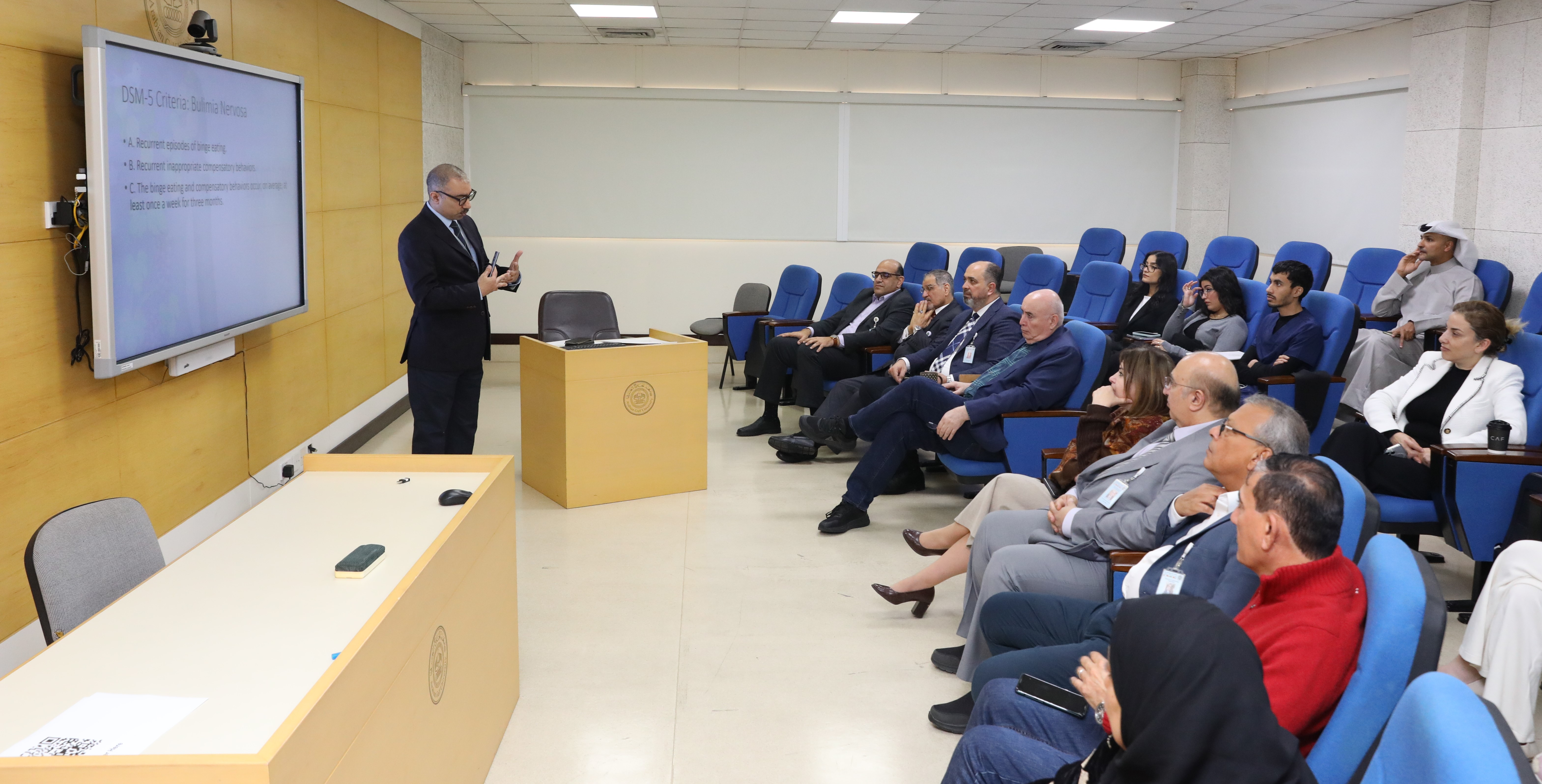 During the workshop, Dr Tarik Al Shaibani, an associate professor in the AGU’s Department of Physiology, explained that studies related to eating disorders have shown a strong link between these disorders and psychological stress, emotions, and mood. He noted that psychological tensions and daily pressures can affect an individual's eating behaviour in two contradictory ways: either by causing them to refrain from eating or by leading them to eat excessively without control.