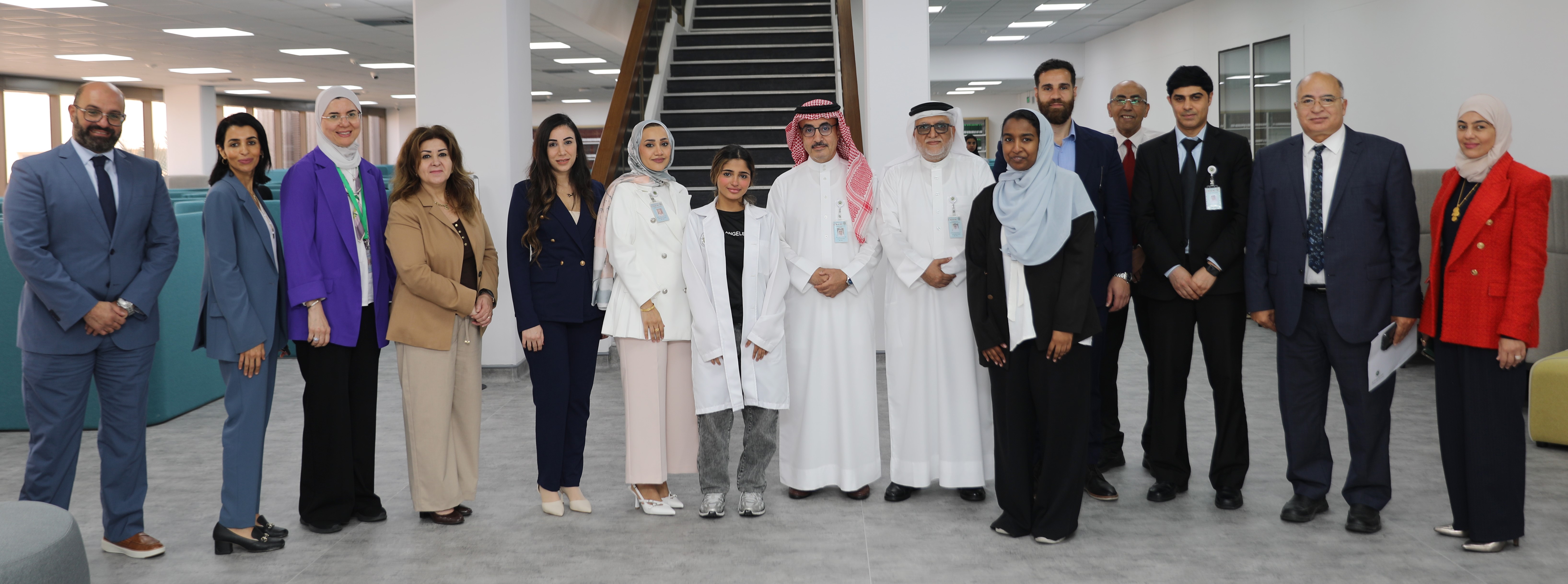 During his visit to the training and development lab in the library, His Excellency the President of the University, Dr Saad bin Saud Al Fuhaid, stressed the university's keenness to provide the library with various references and modern e-databases to maximise the benefit of students in various academic programs. This stems from the university's belief in enhancing the role of medical libraries and electronic resources to support academic achievement and scientific research while developing the process of education and self-learning.