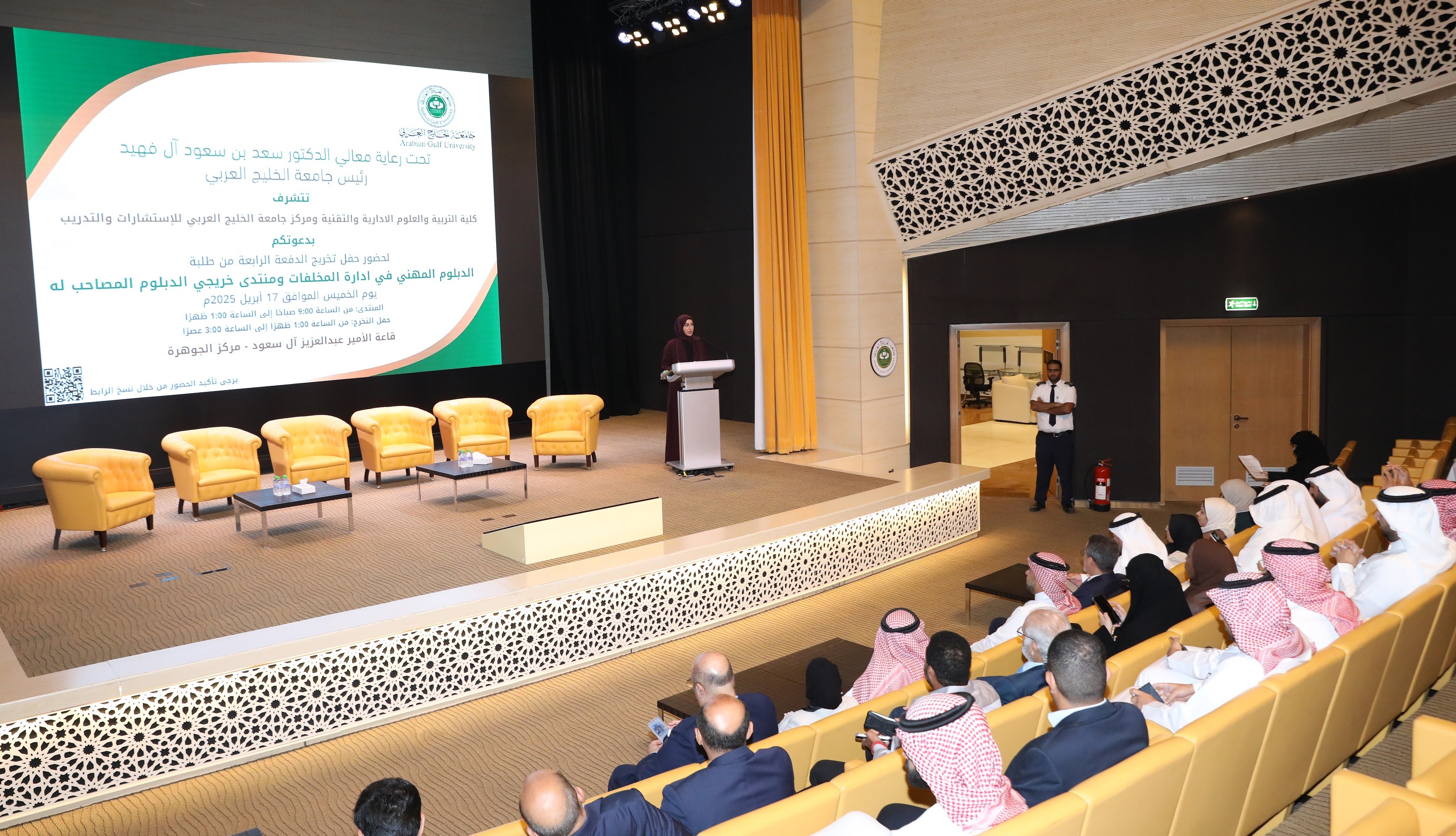 وقبل تتويج الخريجيين، قالت مديرة مركز جامعة الخليج العربي لخدمة المجتمع والاستشارات والتدريب والتعليم المستمر الدكتورة عفاف بوغوى في كلمتها: "يأتي إطلاق هذه الدبلومات الاحترافية ثمرةً للعمل الجاد والطموح الذي تقوده جامعة الخليج العربي، في إطار التزامها المستمر بإعداد كوادر وطنية قادرة على الابتكار والمساهمة الفاعلة في بناء مستقبل دولنا الخليجية"، مؤكدة حرص مركز خدمة المجتمع الاستشارات والتدريب على تبني البرامج النوعية لتلبية احتياجات سوق العمل الخليجي، والاسهام بفعالية في تحقيق أهداف التنمية المستدامة لرؤية 2030."