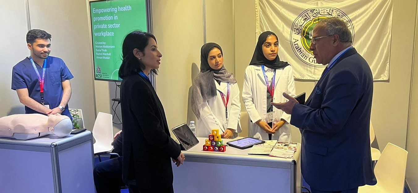 Students of the College of Medicine and Health Sciences at Arabian Gulf University (AGU) participated in the activities of the Environment, Health and Safety Week held by BAPCO, within the framework of activating their community role. The event served as an interactive platform to identify the risk factors associated with diabetes and preventative measures, providing guidance on adopting healthy lifestyles that focus on proper nutrition and regular exercise, in addition to the importance of periodic follow-up with doctors for early detection.